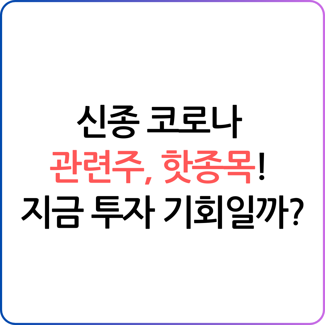 🚀 신종 코로나 관련주, 지금 투자해도 될까?