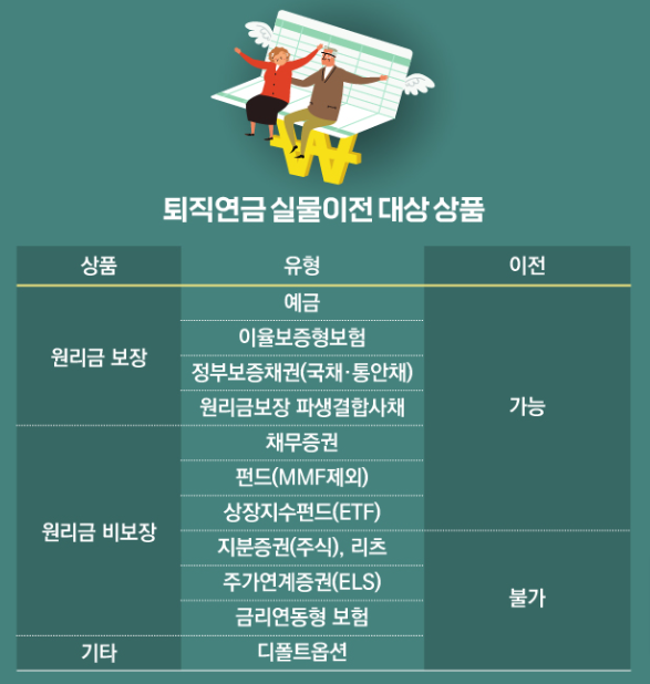 - 기존에는 퇴직연금을 이전할 때 상품을 해지해야 했지만, 실물이전 서비스 덕분에 추가 비용 없이 그대로 유지 가능