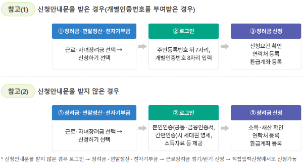 - 국세청 장려금 상담센터 (☎ 1566-3636) 로 전화하면 세무서 직원이 대리 신청 가능