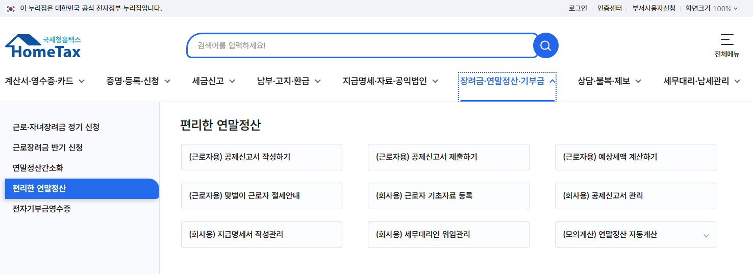 - [My 홈택스] → [세금 신고·납부] → [연말정산 환급금 신청]