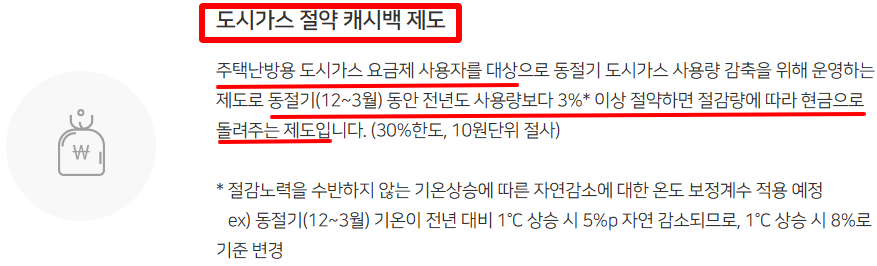 동절기(12월~3월) 동안 도시가스를 절약하면 현금으로 돌려받을 수 있는 "도시가스 절약 캐시백 제도"가 시행됩니다.