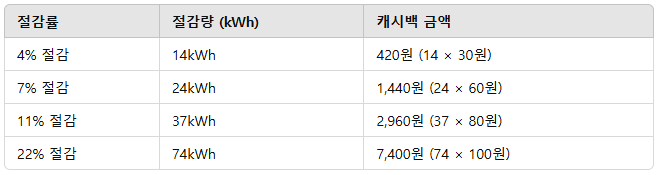 👉 사용량이 많을수록, 그리고 절감율이 높을수록 캐시백도 커집니다!