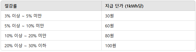 절감률에 따라 최대 100원/kWh까지 지급되므로, 전기를 아끼는 만큼 혜택이 늘어나는 것이 가장 큰 장점인데요.
